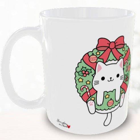 Taza personalizada de Navidad con foto y nombres - Gato kawaii corona Navidad