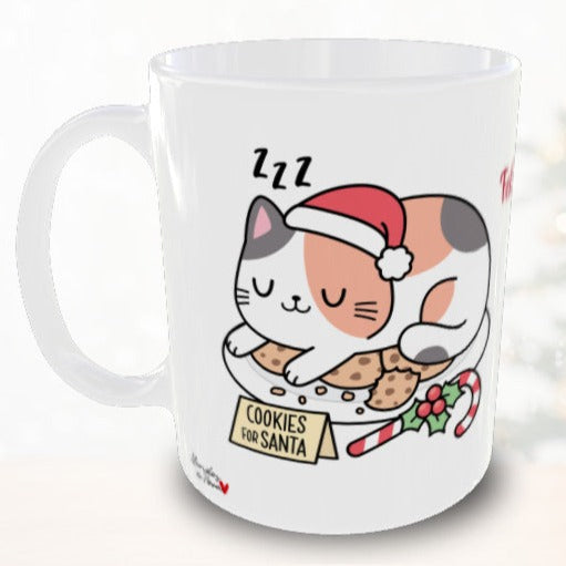 Taza personalizada de Navidad con foto y nombres - Gato kawaii cookies for Santa